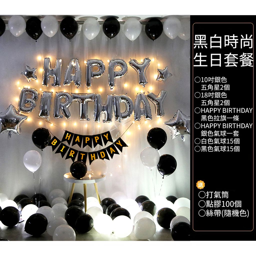 黑白時尚生日派對DIY套組